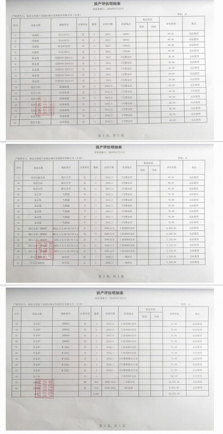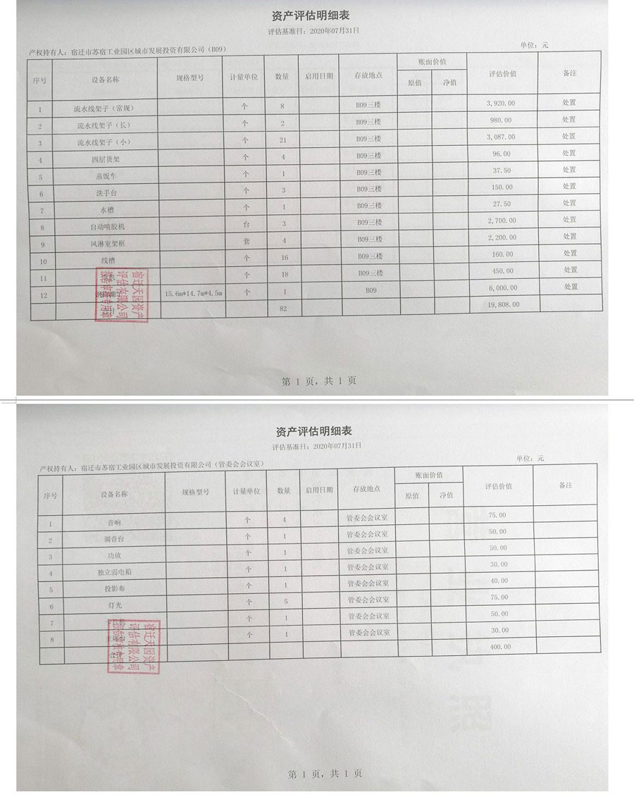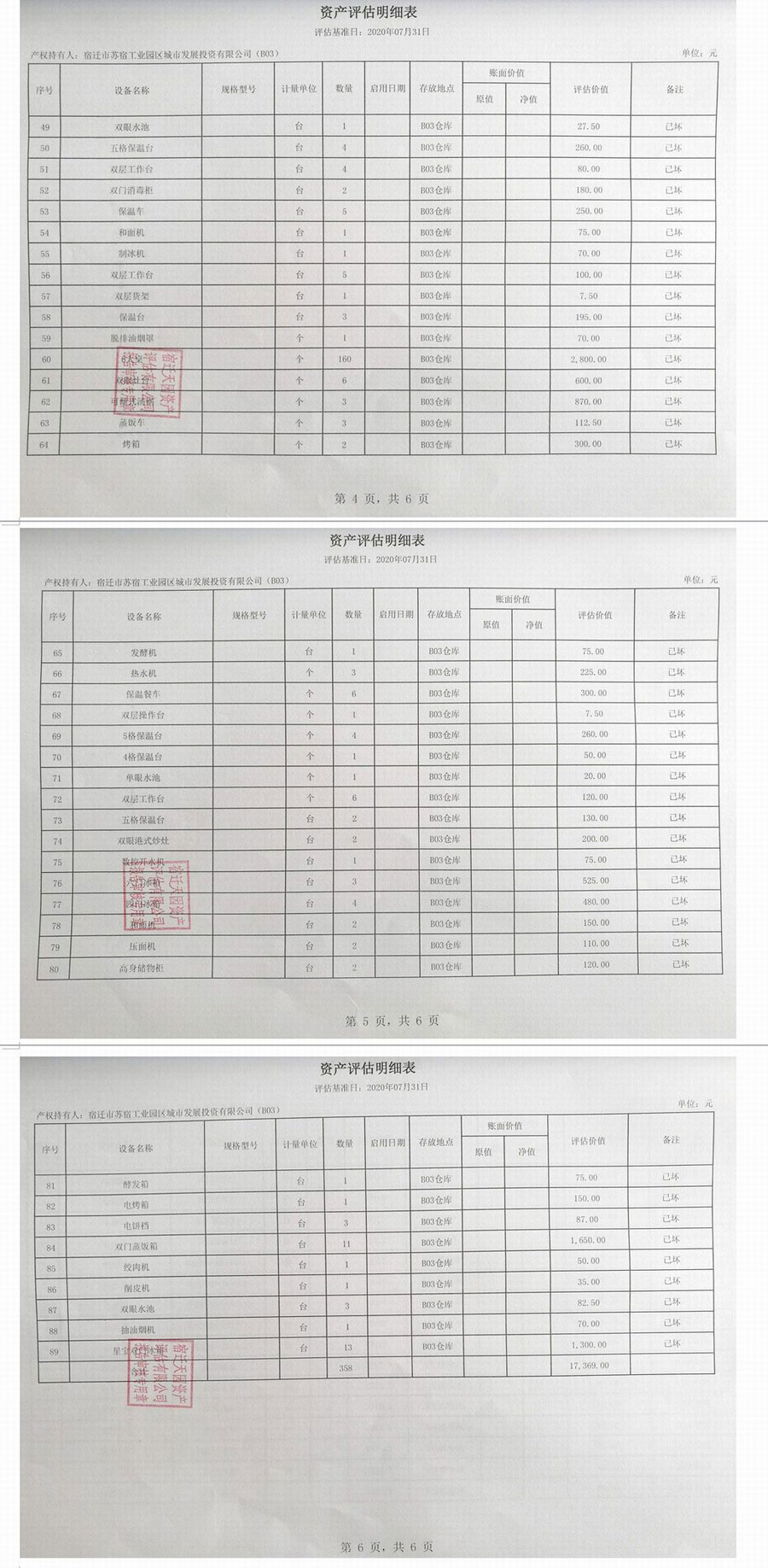 報(bào)廢廚房廚具、辦公設(shè)備、電子設(shè)備、鋼構(gòu)棚子(不含棚內(nèi)烤漆房設(shè)備)等,具體詳見(jiàn)《資產(chǎn)評(píng)估明細(xì)表》共11頁(yè),標(biāo)的整體拍賣(mài),起拍價(jià)9.02萬(wàn)元。