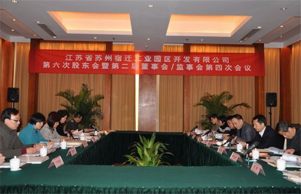 2013年1月18日上午,江蘇省蘇州宿遷工業(yè)園區(qū)開(kāi)發(fā)有限公司召開(kāi)第六次股東會(huì)暨第二屆董事會(huì)/監(jiān)事會(huì)第四次會(huì)議。公司股東代表、董事、監(jiān)事參加了會(huì)議,公司經(jīng)營(yíng)管理班子成員列席了此次會(huì)議,會(huì)議由宿遷市副市長(zhǎng)、蘇州宿遷工業(yè)園區(qū)黨工委書(shū)記、管委會(huì)主任、公司董事長(zhǎng)顧玉坤同志主持。