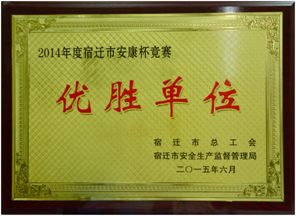 近日,公司獲評(píng)宿遷市總工會(huì)和宿遷市安全生產(chǎn)監(jiān)督管理局聯(lián)合頒發(fā)的2014年度宿遷市安康杯競(jìng)賽優(yōu)勝單位稱號(hào)。獲此殊榮的本次表彰全市共有18家單位,開發(fā)公司也是園區(qū)唯一一家獲得優(yōu)勝單位稱號(hào)。