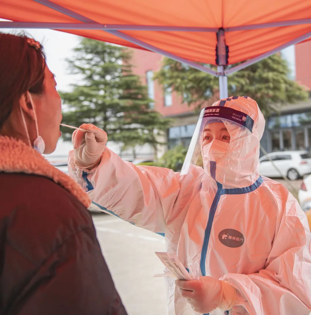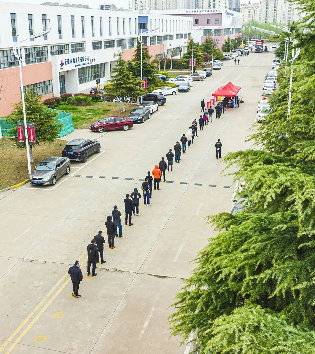 圖為3月21日,工業(yè)坊廠區(qū)各企業(yè)開展第二輪核酸抽檢工作,對保潔、保安、食堂工作人員做到每日一檢,工業(yè)坊各企業(yè)每天抽檢總人數(shù)的20%,做到一周內全員應檢盡檢。