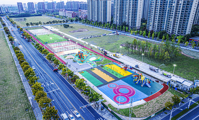 該項(xiàng)目所處位置原為一處待開發(fā)地塊,園區(qū)根據(jù)居民需求規(guī)劃建設(shè)健身跑道、全齡段健身區(qū)、綜合兒童活動(dòng)區(qū)、平地輪滑場(chǎng)、廣場(chǎng)舞片區(qū)和各類球場(chǎng)(其中羽毛球四組、網(wǎng)球場(chǎng)一組,7人制籠式足球場(chǎng)一組、籠式籃球場(chǎng)四組),同步建設(shè)公廁、停車場(chǎng)等配套設(shè)施。