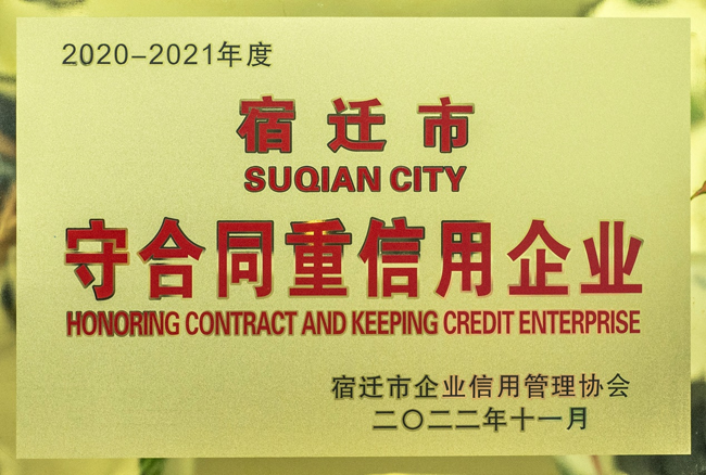 誠(chéng)信是企業(yè)重要的無形資產(chǎn),是企業(yè)賴以生存的制勝法寶,是企業(yè)的核心競(jìng)爭(zhēng)力。近日,園區(qū)城發(fā)公司獲評(píng)宿遷市2020 — 2021年度“守合同重信用”企業(yè)榮譽(yù)稱號(hào)。