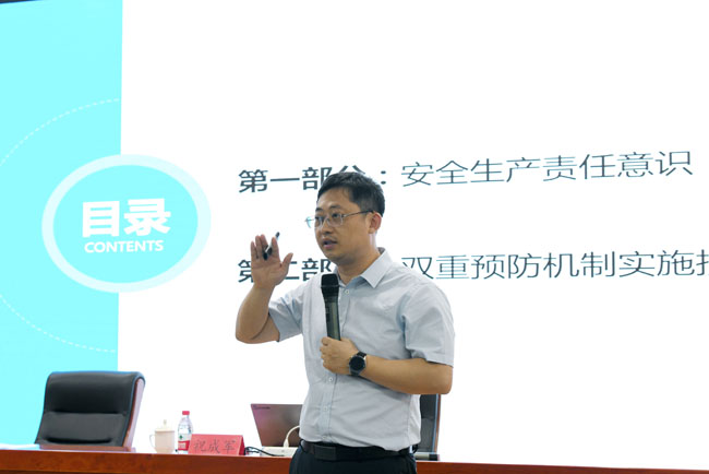 本次培訓(xùn)邀請(qǐng)國(guó)家注冊(cè)安全工程師祝成軍進(jìn)行授課。培訓(xùn)會(huì)上,祝成軍圍繞開(kāi)展安全生產(chǎn)雙重預(yù)防體系建設(shè)工作的意義,相關(guān)法律法規(guī)、標(biāo)準(zhǔn)等內(nèi)容進(jìn)行了詳細(xì)講解,并結(jié)合具體事故案例,對(duì)如何理解雙重預(yù)防體系、如何劃分作業(yè)單元、如何進(jìn)行風(fēng)險(xiǎn)辨識(shí)與評(píng)價(jià)等內(nèi)容進(jìn)行了專(zhuān)門(mén)的講解。